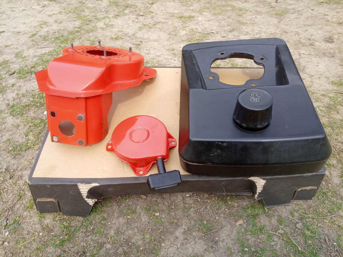 benzínová nádrž, chladiaci plech a štartér na Vari