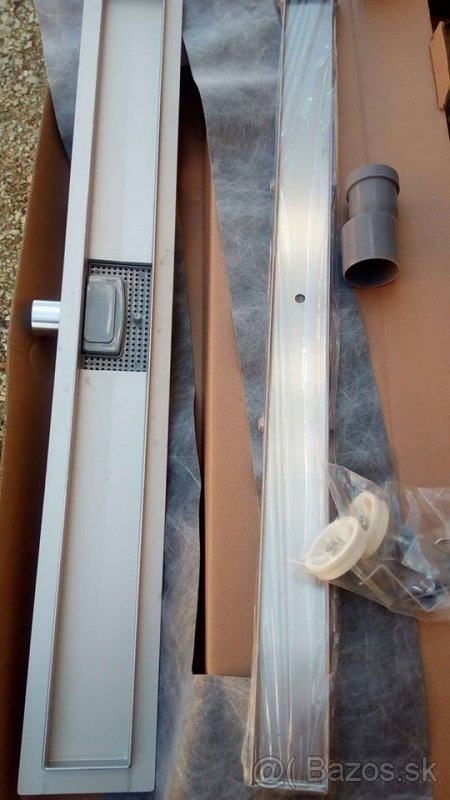 Predám lineárny sprchový celonerezový žľab dĺžky 800mm, kompletný set so sifónom.