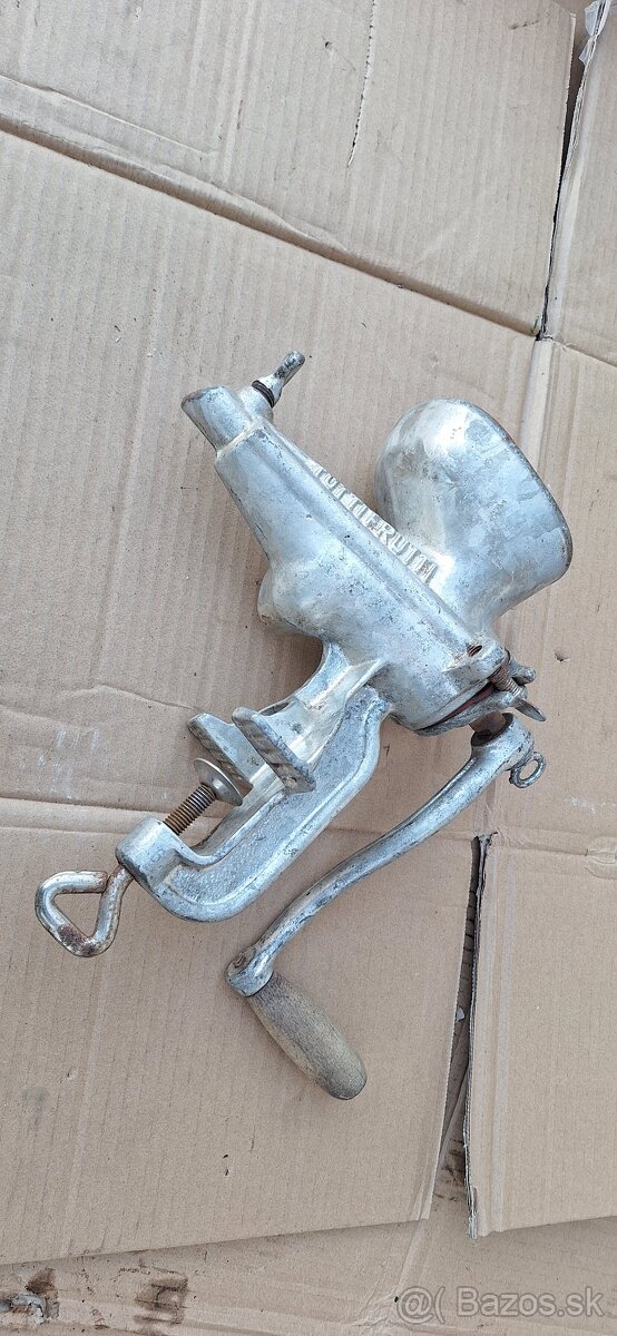 Mlynček na mäso - [28.3. 2026]Predám mlynček na mäso veľkosť 8 viď foto. Stará kvalita. Vo veľmi dobrom stave. Cena 20 eur