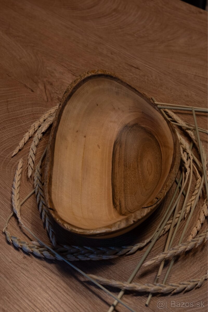Ručne vyrobená orechová misa z masívneho dreva s prírodnou hranou.
