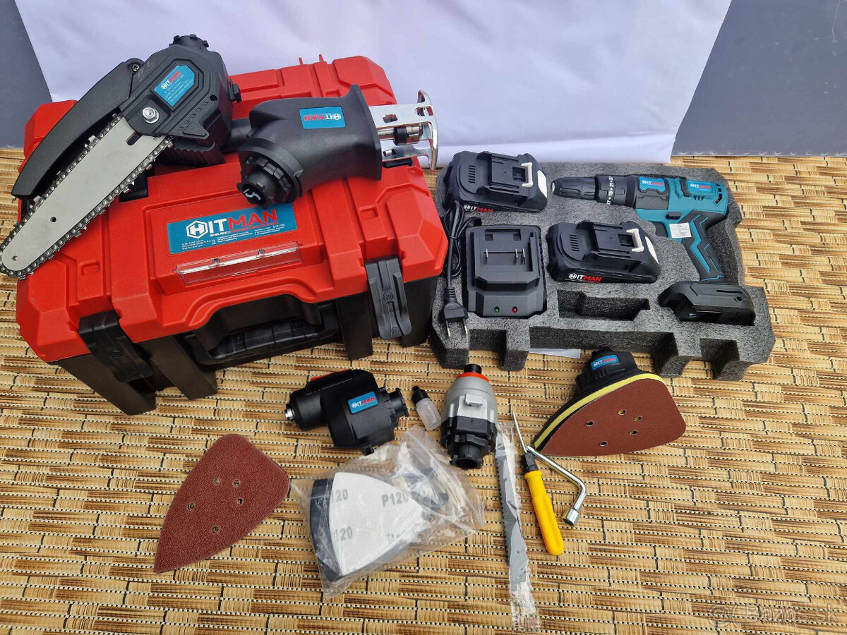 predam akumulatorovu baterkovu chvostovu pilu vrtačka utahovačka retazova pila bruska multifunkčne naradie baterky a nabijačka.