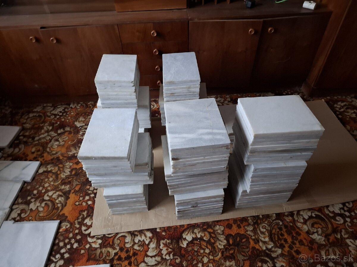 Mám 68ks 25x30cm a 88ks 20x30cm na foto dlazba ma niektoré hrany poolamovane hlavne zo spodu ale aj z hora viď foto. K tomu je ešte cca max 1m² orezu. Možno to niekomu pomože