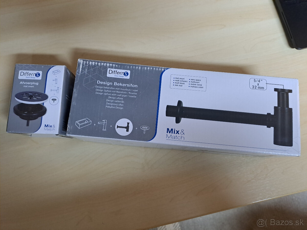 Cierny matny novy nepouzity sifon spolu s vypustou na umyvadlo. Novy, nepouzity, vsetky rozmery su na fotkach. Cena 20e aj s postou.