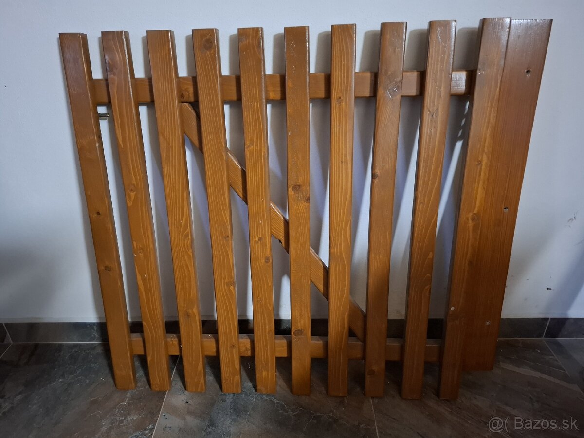 Predam drevene dvierka hnedej farby.Pouzival som ich ako zabranu,aby dieta nepadlo dole schodmi.Sirka 101cm ,Vyska 99cm.Maju 2x zaves,1x zamok.
