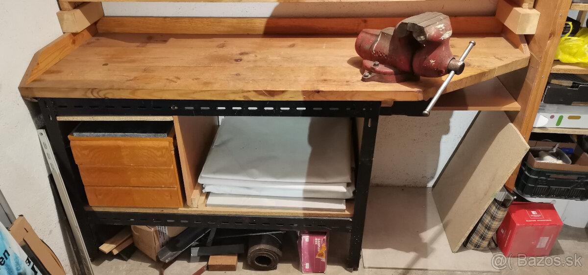 s 3 zásuvkami,dl.192cm,hl.63cm,v.89cm,+ veľmi zachovalý zverák York 150.Ponk+zverák 299€.NA MAIL A SMS NEREAGUJEM.
