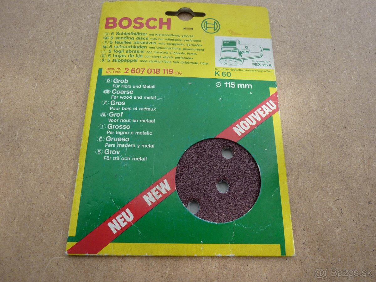 -nové brúsne kotúče Bosch ,3 ks, pre priemer 115mm, zrnitost K60 , vhodné pre drevo ako i kov - cena 5€ +poštovné