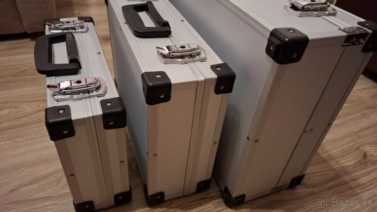 Predám 2 sady kvalitných hliníkových kufrov,uzamykatelných,dajú sa zložiť jeden do druhého,rozmery jednotl.kufrov sú v cm