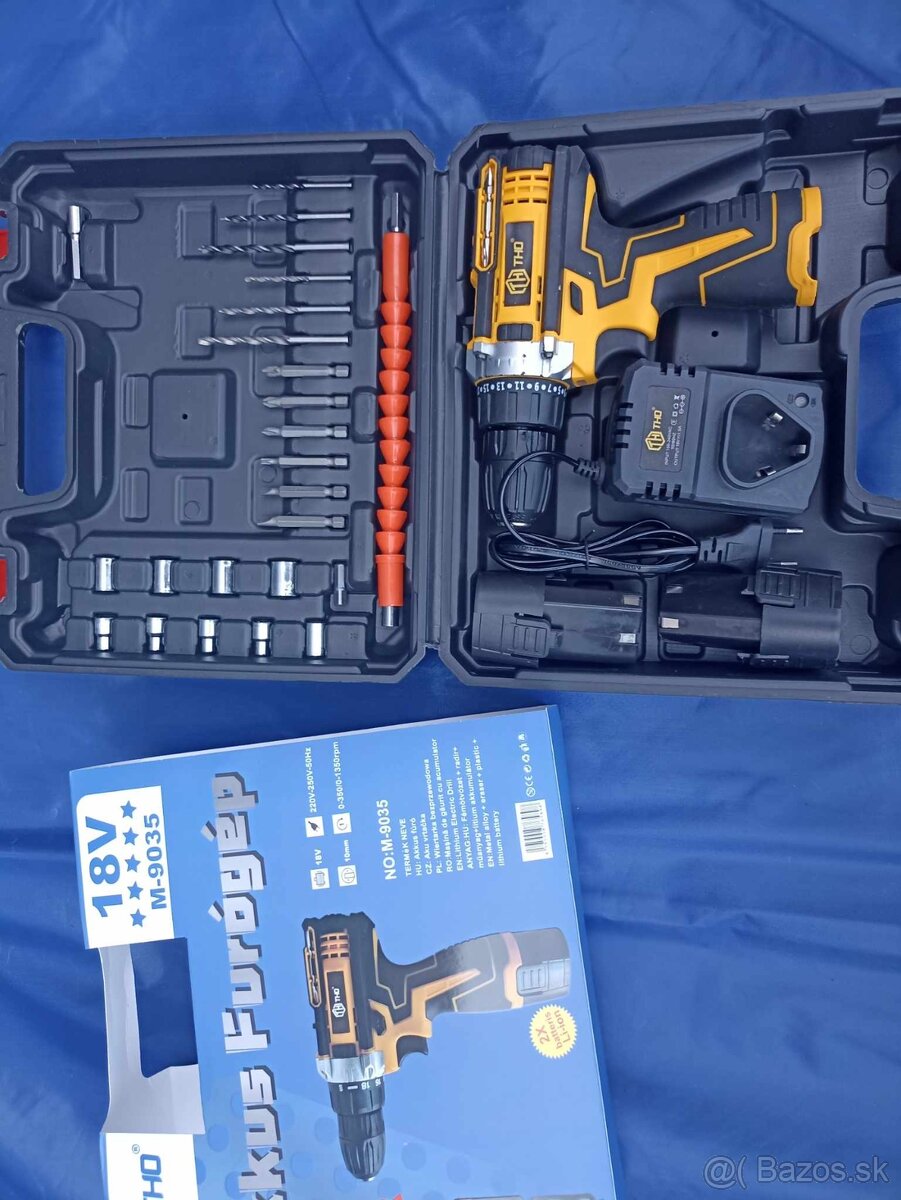 baterkova aku vrtačka šrobovačka uťahovačka z dvoma baterkami nabijačkou a prislušenstvom.