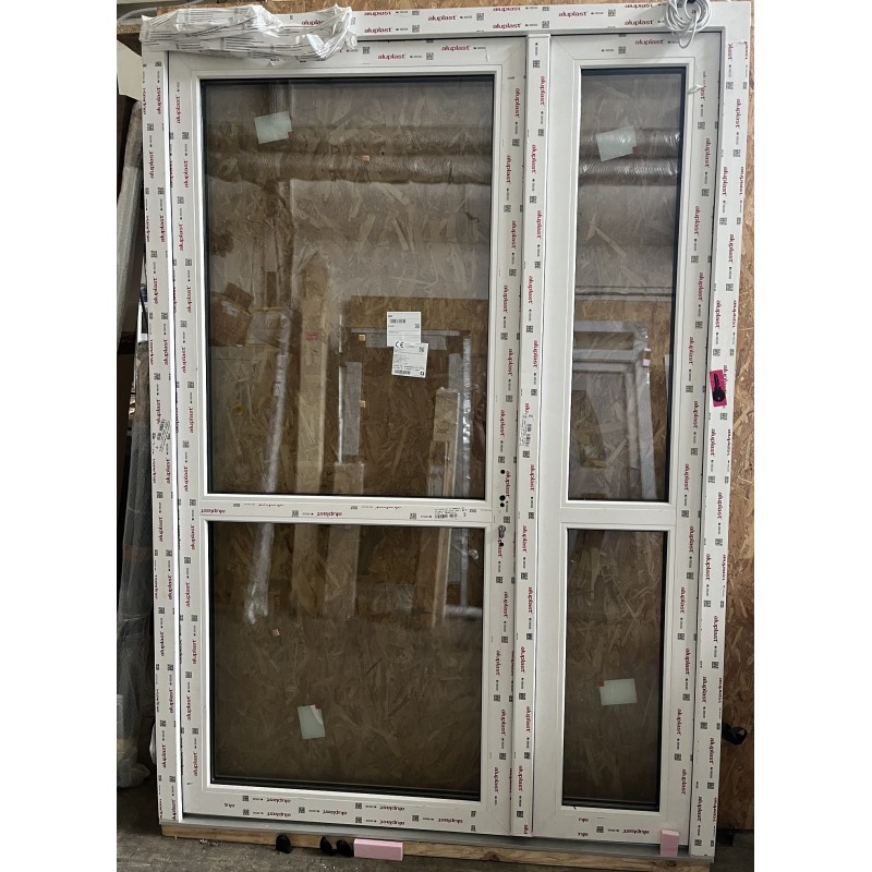 Vchodové dvere 2-krídlové, PVC, profil IDEAL 4000, farba biela obojstranne, presklené 3-sklo 36mm, otváravé VON (pohľad zvnútra), elektrozámok, samozatvárač s aretáciou, zvnútra kľučka a zvonka guľa