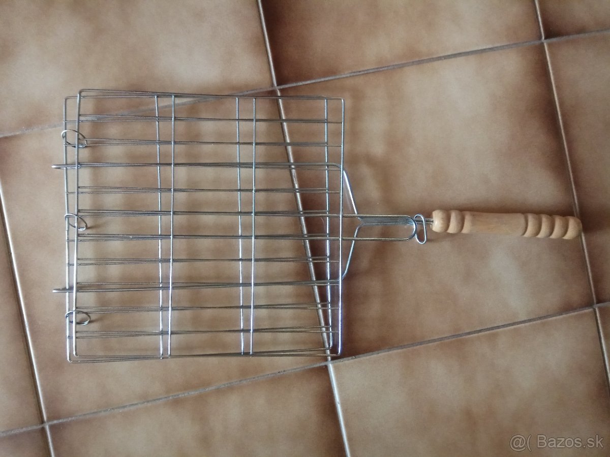 Predám úplne novú mriežku na grilovanie rýb, rozmer 27x27cm, s drevenou rúčkou.