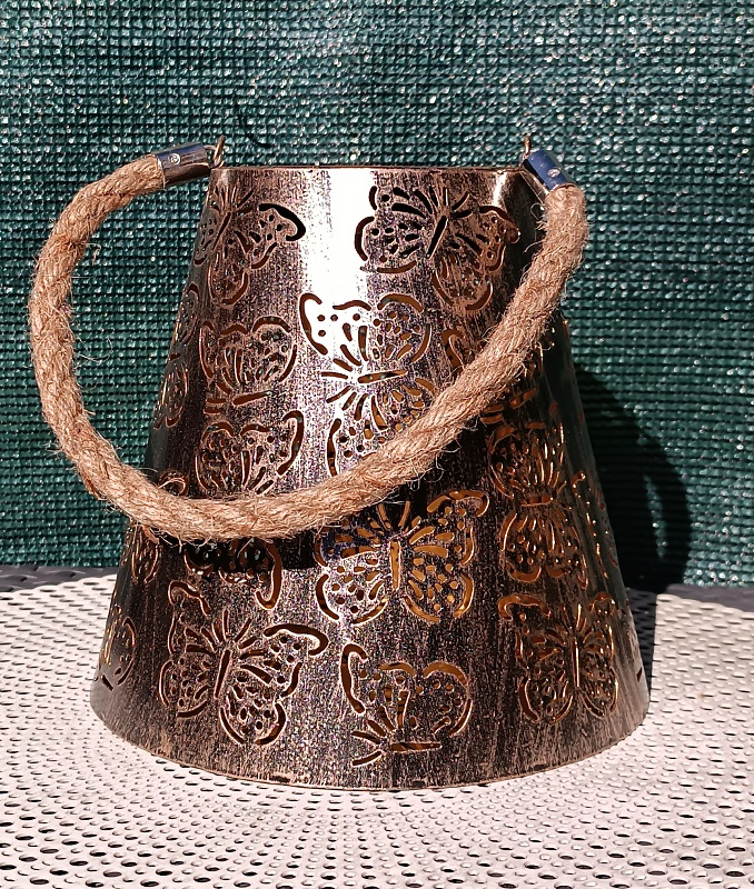 Výška 17cm, celková výška s uškom 35cm, priemer hore 10cm, dole 18cm