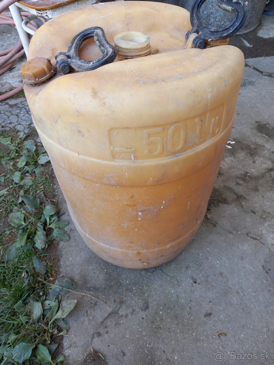 Predám železný sud z nafty, 200 l, - 1 ks, cena 40,- €, plastové sudy z riedidla, 50 l, - 2 ks, cena 15,- € za 2 ks.