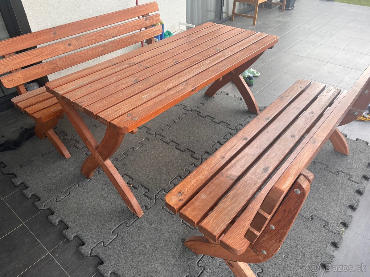 Zachovalý stôl a lavice z masivu , Dlzka 160 cm , treba prebrúsiť a natrieť . Iba osobný odber