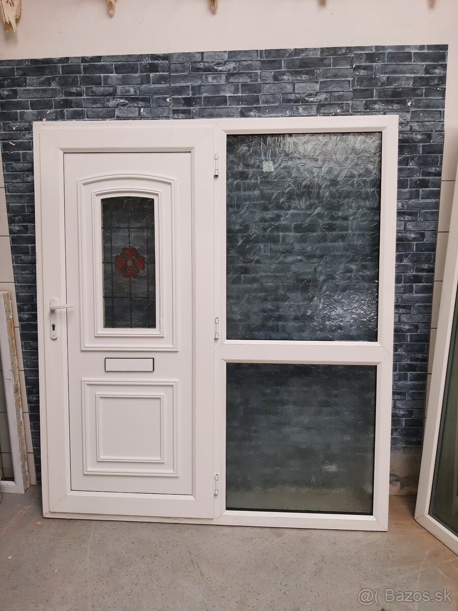 Predam plastove vchodove dvere.180x205cm.pouzivane v dobrom.stave. na jednom.mieste prasknute vid foto bez efektu na dvere.cena 349e.volat 0944888219