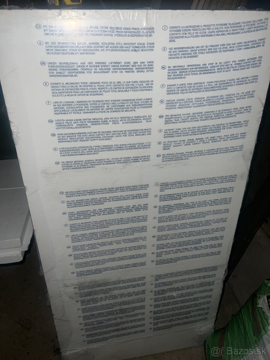 Predám zvyšok tepelnoizolačných platní Promat - 8 kusov = 4 m2. Formát 100x50cm, hrúbka 3cm. Päť kusov je celých, tri kusy sú porezané (viď foto). Cena je za komplet materiál, bez dopravy. Dovoz dohodou.
