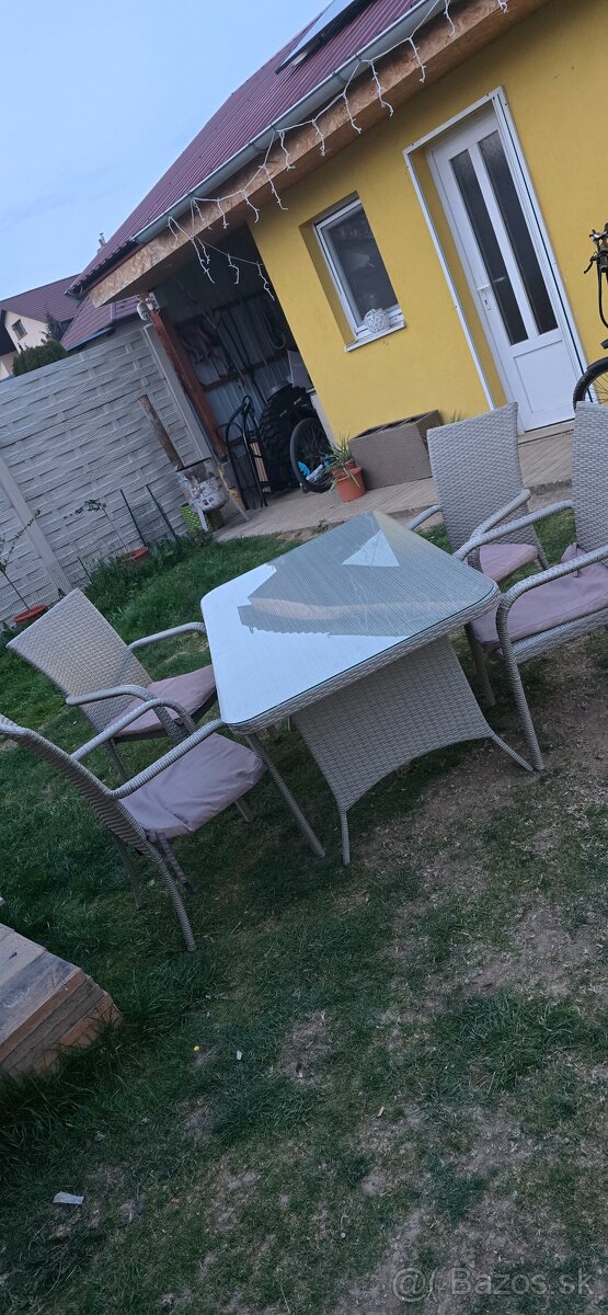 Predám zahradné sedenie - kov a pevný ratan. Je to veľmi pevná súprava, stôl ma na vrchu sklo,podsedaky sú vysedené treba nové ale sedenie nemá žiadne iné vady. Cena je 270e ale dohodne sa nebránim
