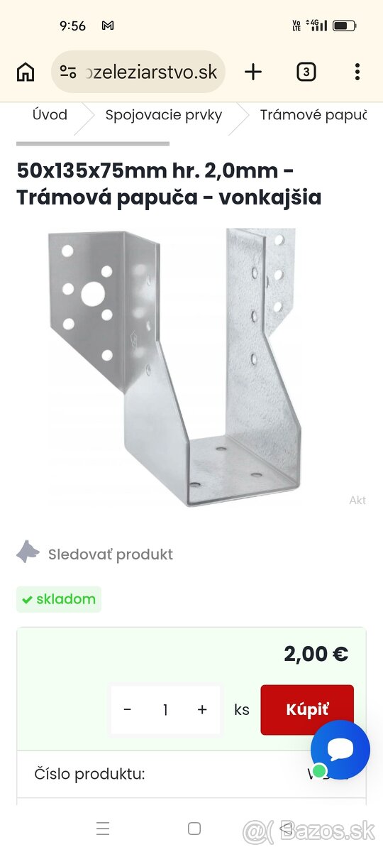 50x135x75mm hr. 2,0mm - Trámová papuča - vonkajšia dva balenia