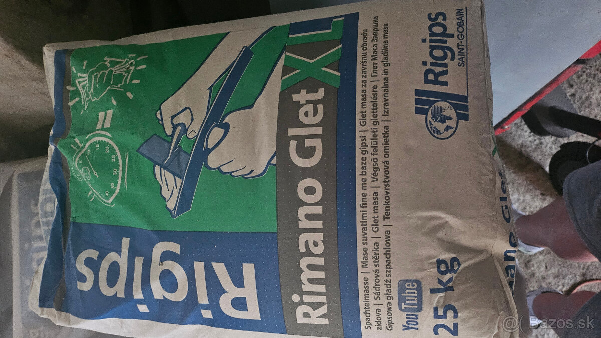 Predám sadrovú omietku rigips Biela jemná tenkovrstvová sadrová omietka so špeciálnou priľnavosťou na použitie v interiéri. Ide o súdržnú a elastickú hladkú omietku s výbornou konzistenciou, je vhodná na omietanie pórobetónových stien a stropov ako podkladová a finálna vrstva. Hrúbka nanášania: 0-10 mm.
