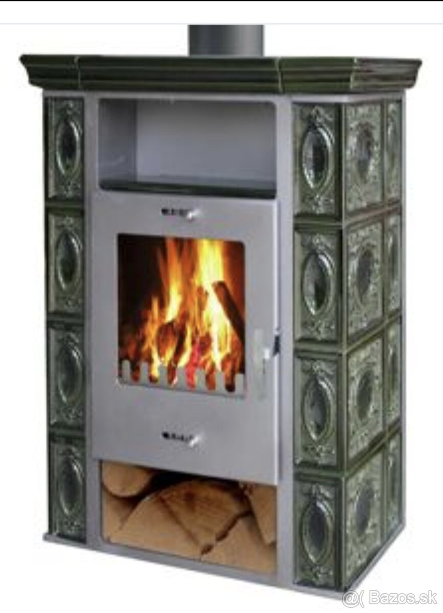 Predám nové - nepoužité kachle s krásnym zeleným keramickým obložením s ohrevom na čaje. Vnútorne obloženie ohniska zo šamotu,