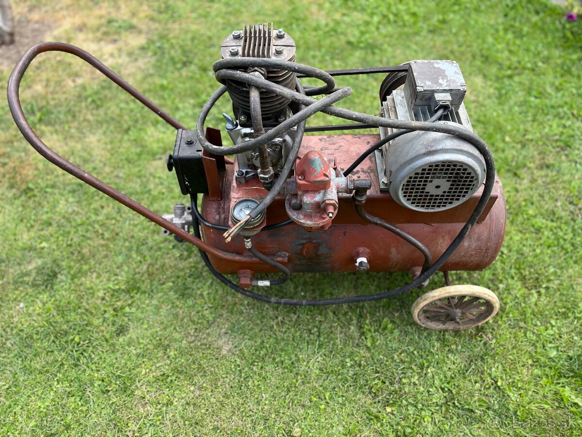 Predám kompresor - nálezovy stav (funkčný). Súčasťou sú aj dve náhradné kompresorové hlavy (viď posledná fotka).
