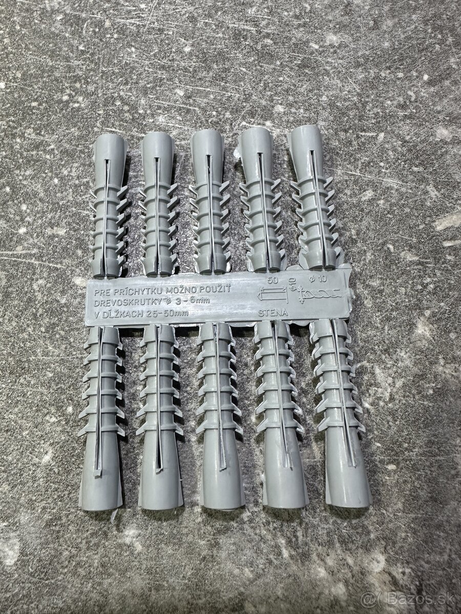Hmoždiny do betónu muriva - [18.4. 2026]Hmoždinky priemer 10 dlžka 10 CM,cca 500 ks,v obchode stoji0.7€ks,dám za 0,3€ks