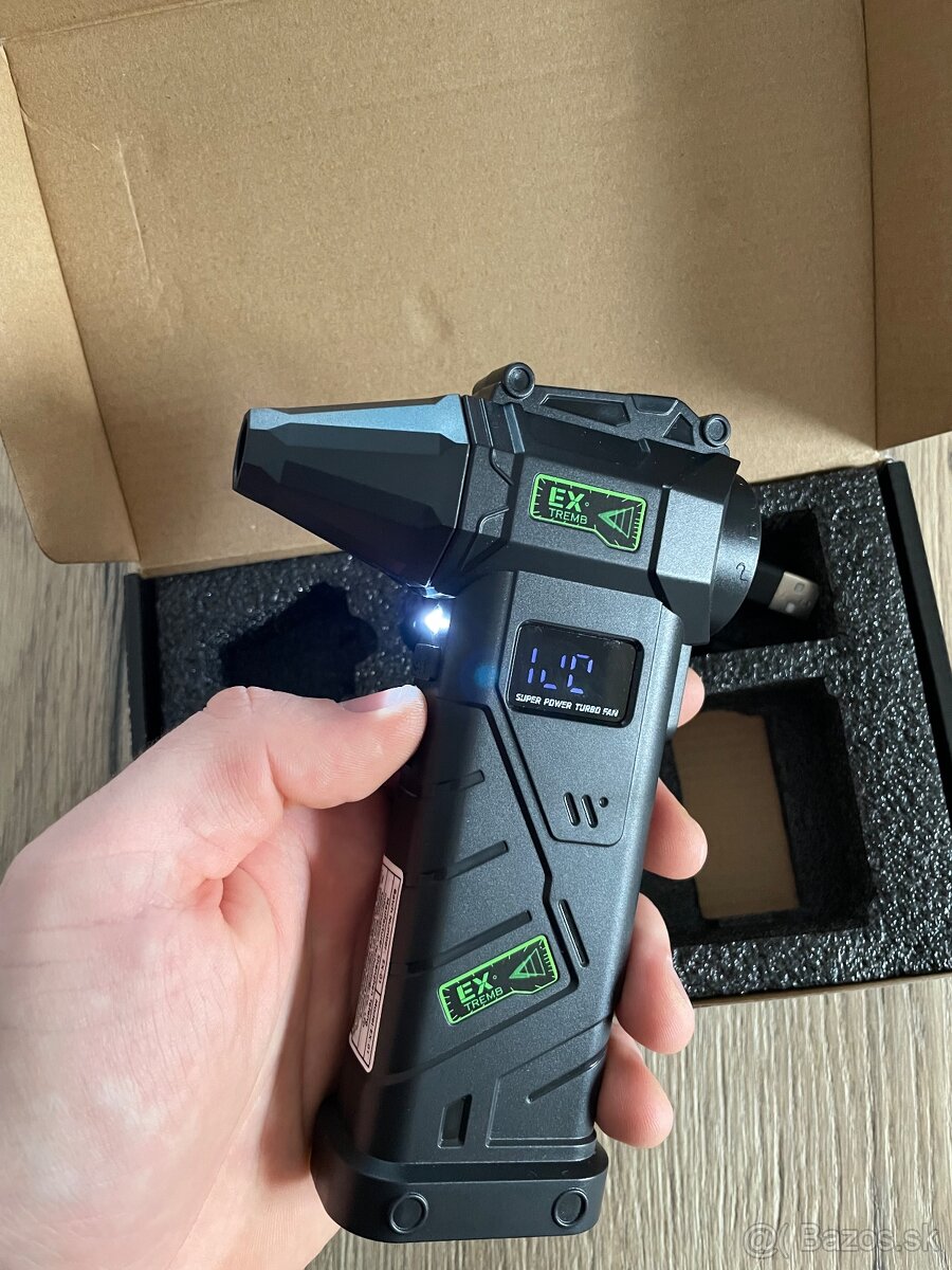 Predám turbínovy fukar s veľkým výkonom. Fuka veľmi silný vzduch ktorý sa dá nastaviť podľa potreby. Má aj svetlo a da sa sním nabíjať aj telefón ako powerbanka USB A USB-C. Cena 22€ plus poštovné.