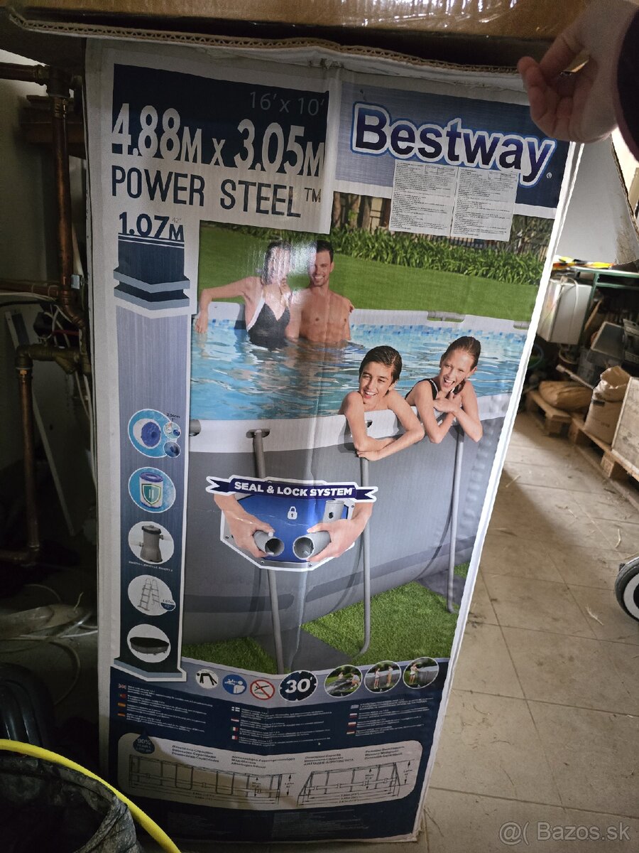 Bazén Bestway 4,88×3,05×1,07 m obsah balenia: (bazén, filter, pumpa, rebrík, plachta, dávkovač)
