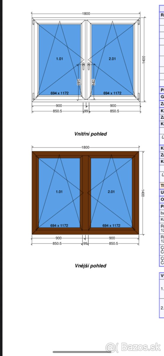 Predám plastove okna 149x203 ,128x203 ,147x265 3sklo,126x155 - [21.4. 2026]1.Predám plastové okno :